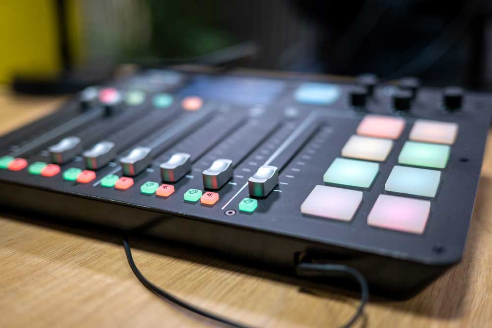 Régie avec intercom, mélangeur, enregistreur, table de mixage